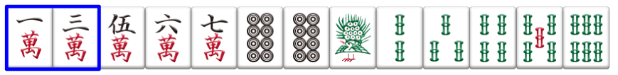 真ん中が空いている数牌の2枚組をカンチャンターツと言います。