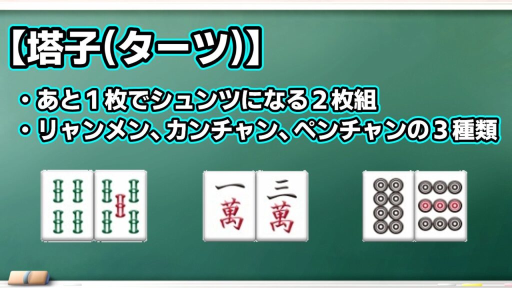 2~8の牌の中で連続した数牌の2枚組をリャンメンターツと言います。