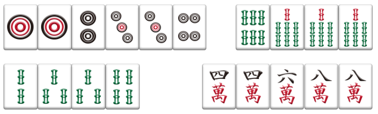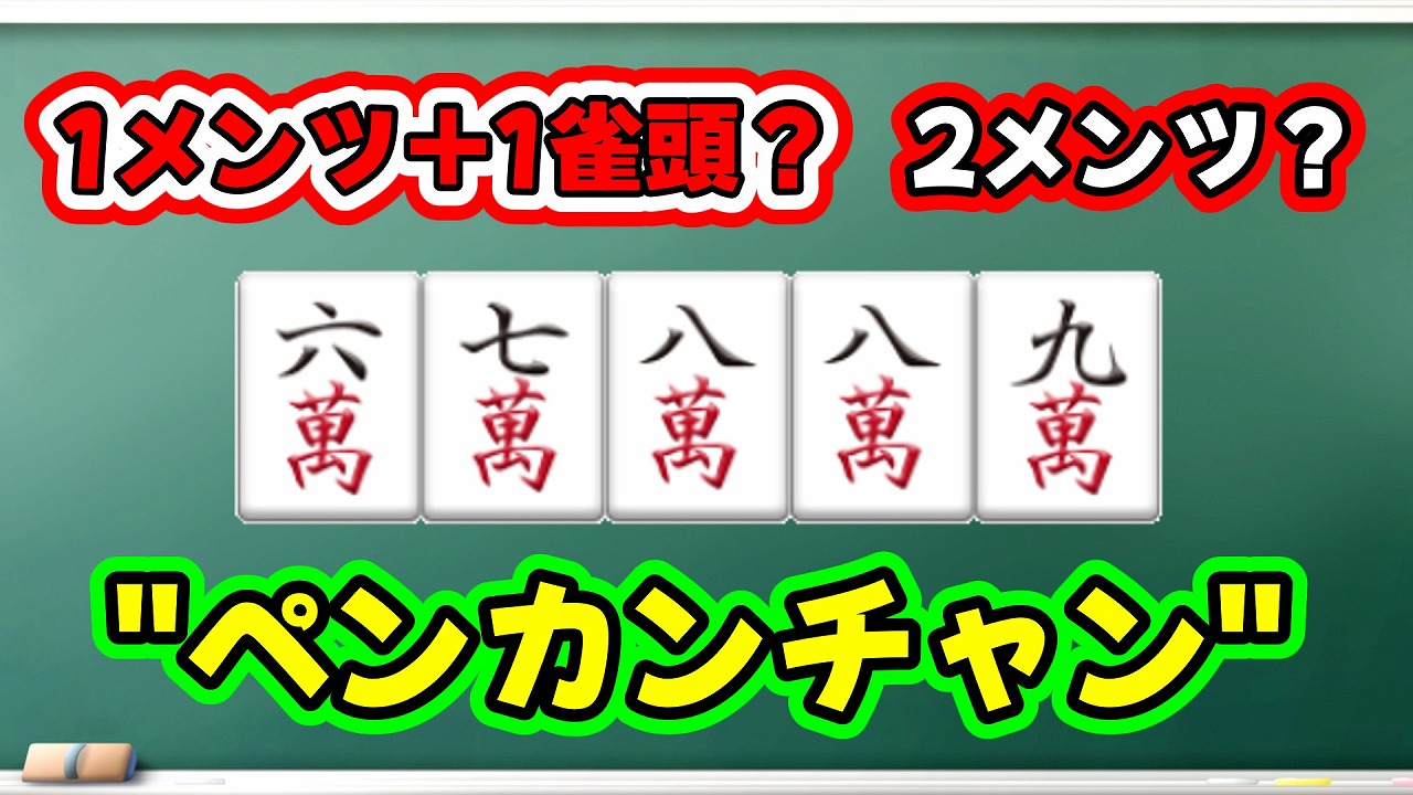 ペンカンチャンとは異なり、最終形まで残ってもリャンメン待ちになり、雀頭が無い場合には4種12枚で1メンツ1雀頭を形成することができます。