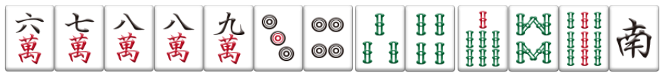 テンパイ形が好形確定になる受け入れは、5-8m・6-9m・南、2-5p、2-5sの9種31枚です。