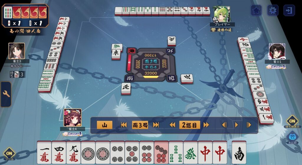 図3 リーチドラ4!三面張!